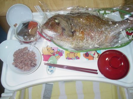 昨日は、下の子のお食い初め(子供が生まれて100日目(地方によっては120日目のところもあるようです)に、食べ物に困らない様にってする儀式らしい。)を親族一同(全員じゃないけど・・・)集めてやりました。
