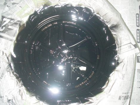 この写真は、新しいタイヤをはめたZ4のホイールを黒に塗った写真です!!!